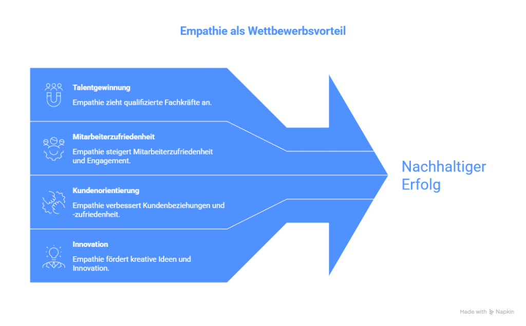 Unternehmen, die Empathie in ihrer Führungskultur verankern, profitieren von einem klaren Wettbewerbsvorteil. Eine solche Kultur zieht talentierte Fachkräfte an, erhöht die Mitarbeiterzufriedenheit und fördert nachhaltigen Erfolg. Besonders in Branchen, in denen Kundenorientierung und Teamarbeit essenziell sind, ist empathisches Leadership unverzichtbar.