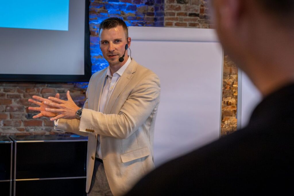 Sascha Oehlbrecht: Über das gesamte Training hinweg arbeiten wir mit unterschiedlichen Übungsformaten, in denen Teilnehmende offenes und ehrliches Feedback sowohl von mir als Trainer als auch von den anderen Teilnehmenden bekommen. Dabei analysieren wir bestehende Skills sehr genau und entwickeln Schritt für Schritt ein individuelles Konzept, das eng an die Persönlichkeit als Führungskraft gekoppelt ist – mit klaren Feedbackschleifen, Reflexion und direkter praktischer Anwendung.